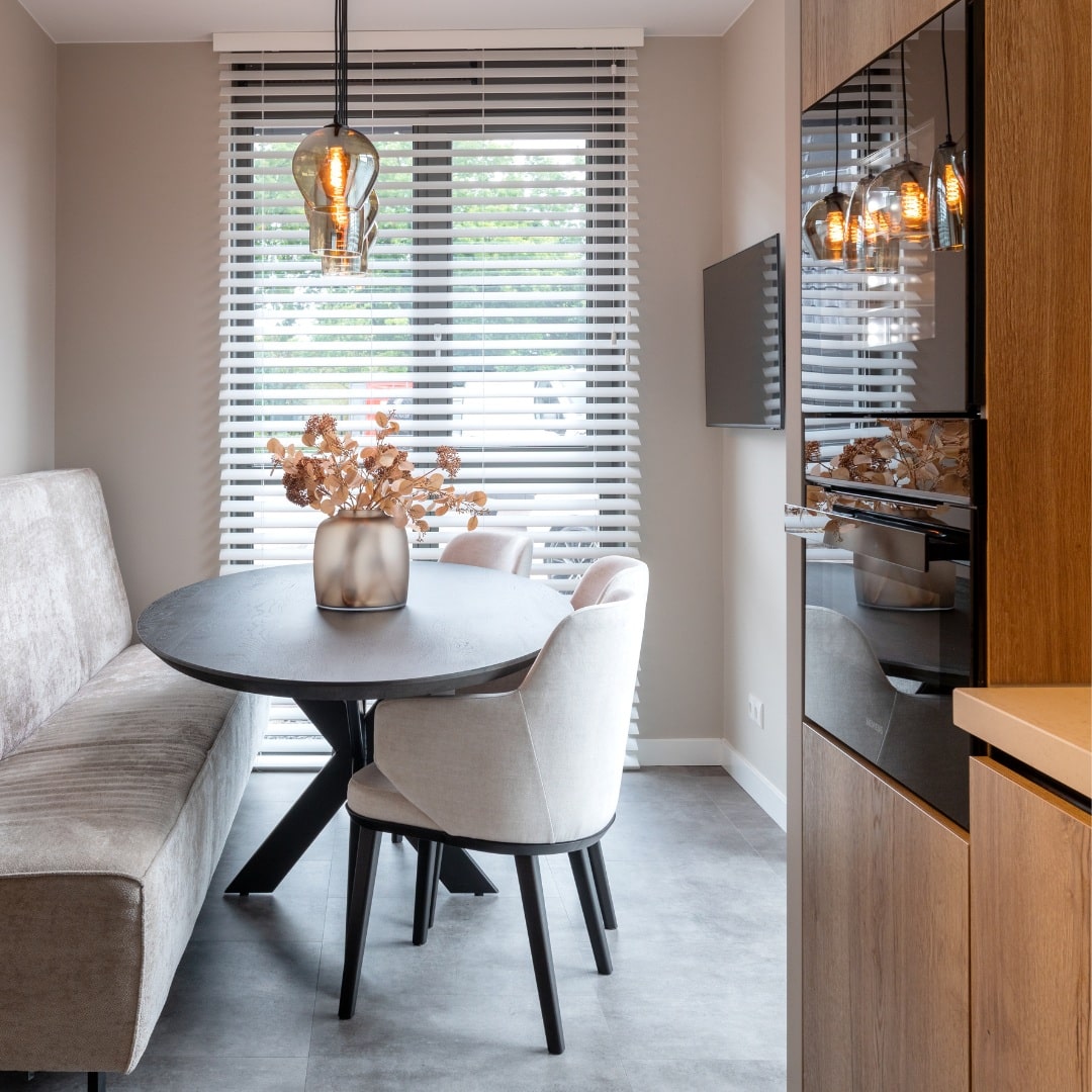 - Sfeer: Woonkeuken die rust, sfeer en natuurlijke schoonheid uitstraalt