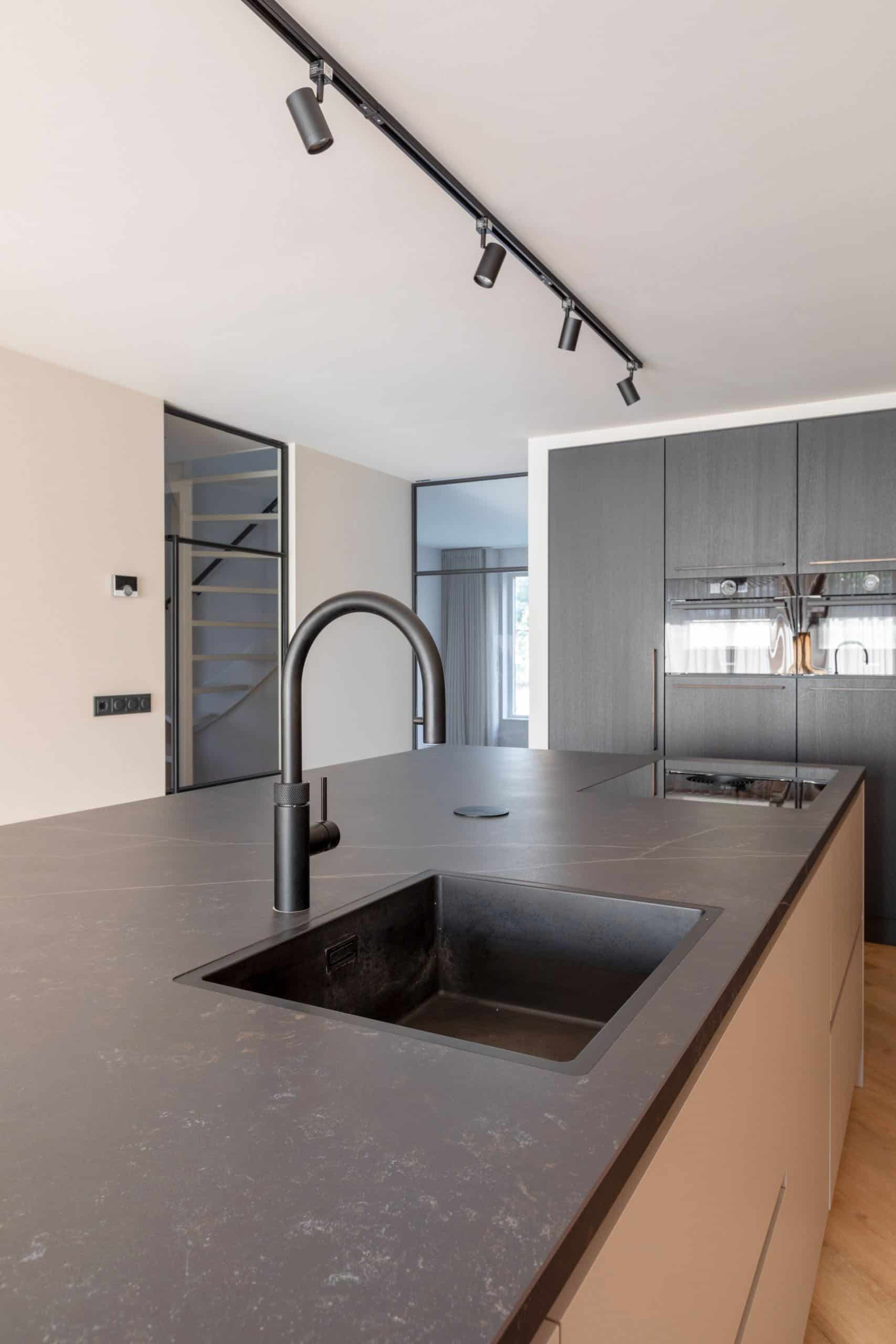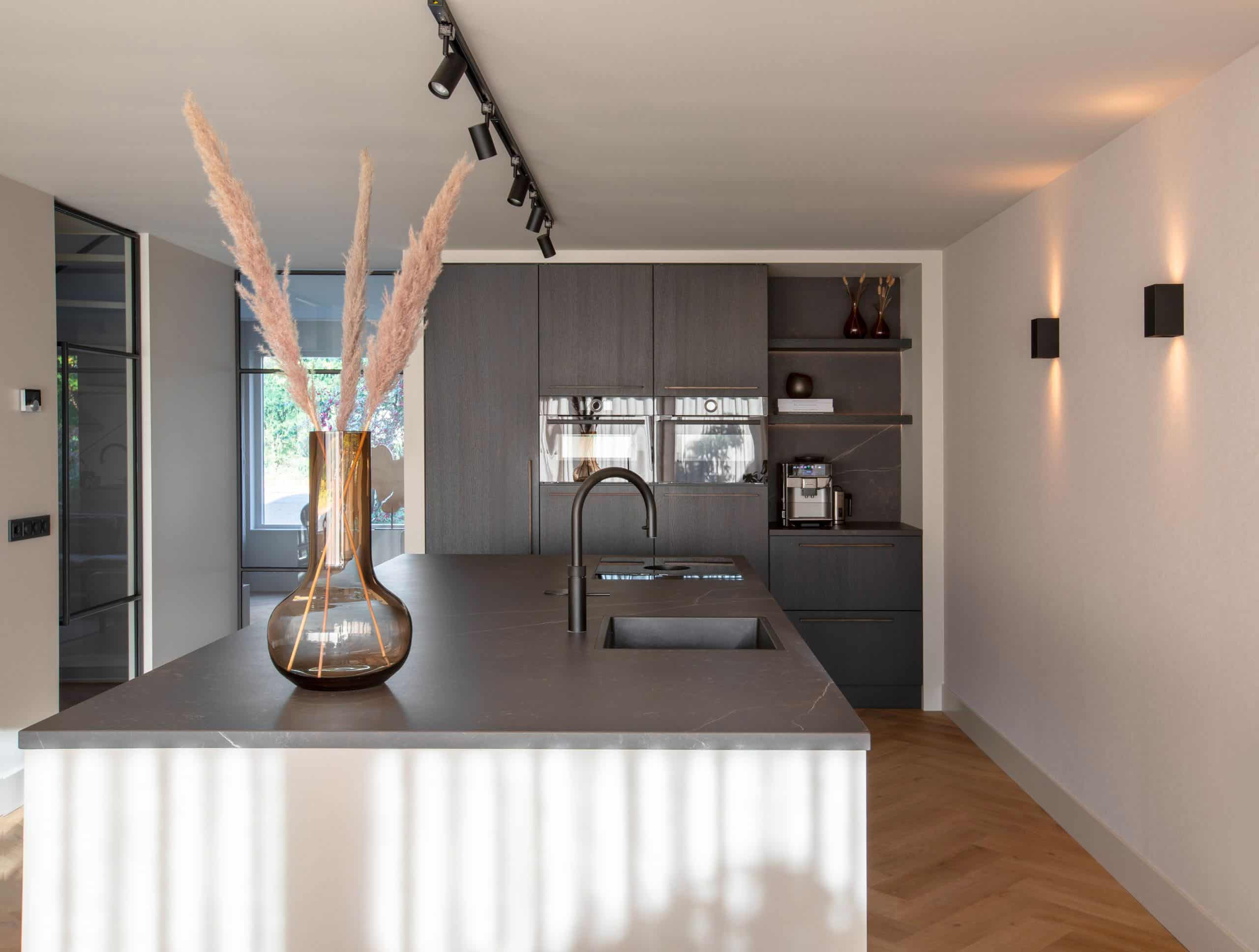 • Werkblad: Dekton in de kleur keylia, onderhoudsvriendelijk en duurzaam.