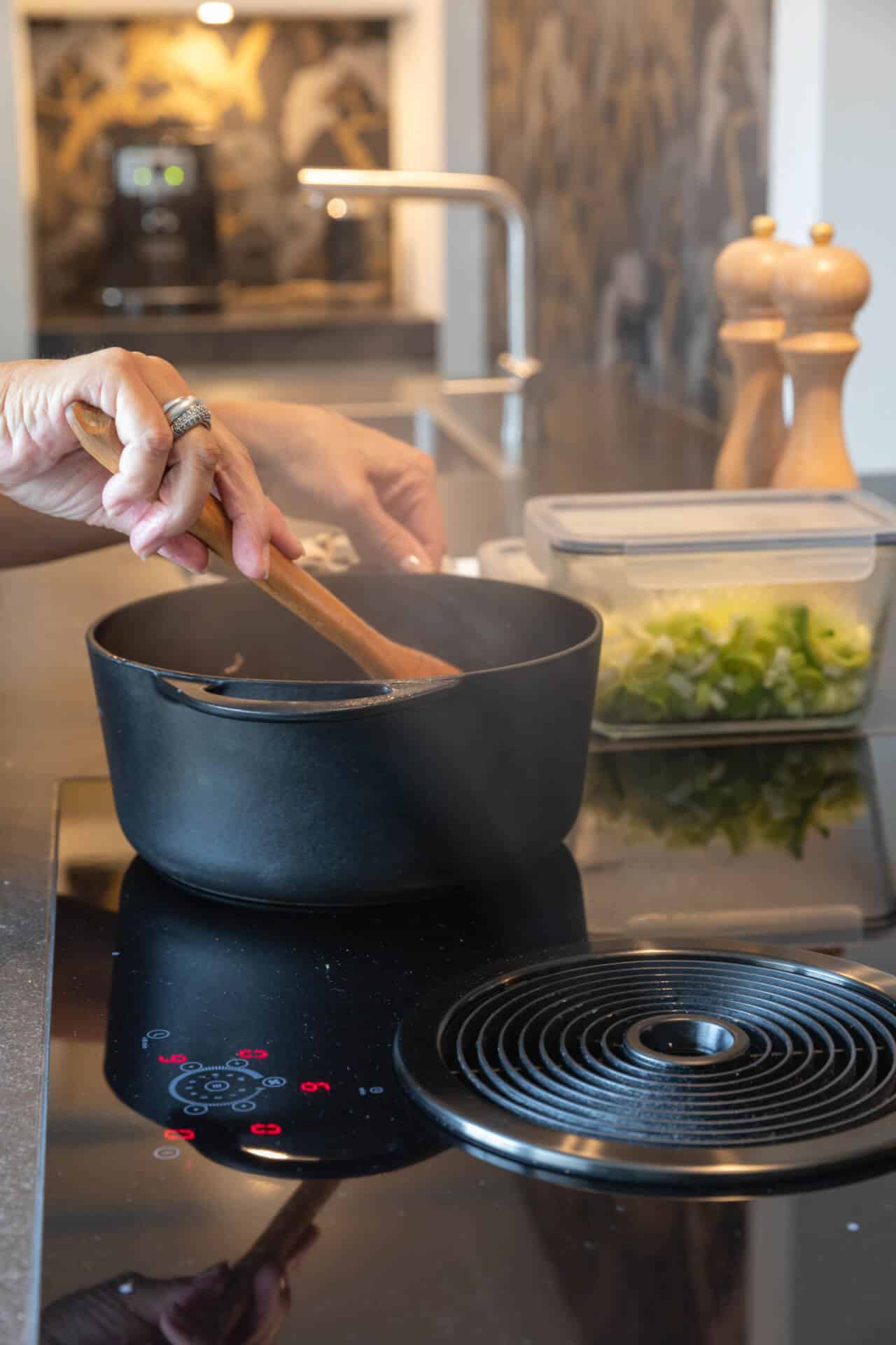 Wij hadden de wens om de keuken op een natuurlijke manier door te laten lopen in het woongedeelte.