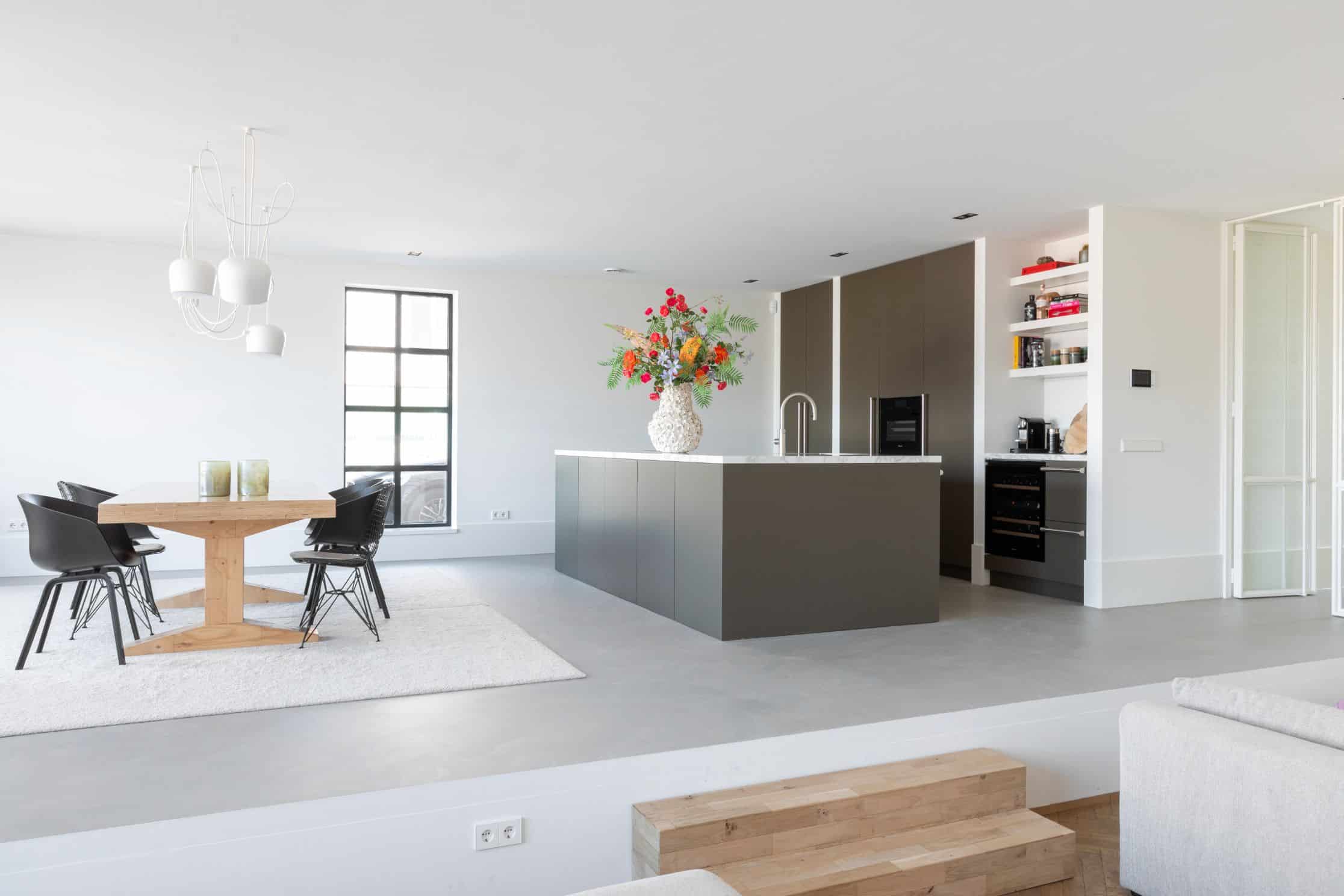 Het was de wens van de familie om een woonkeuken te creëren waarbij de keuken in contact staat met het eetgedeelte. Bij het kookeiland kan de familie heerlijke maaltijden bereiden en tegelijkertijd kletsen met familie en vrienden aan de eettafel.