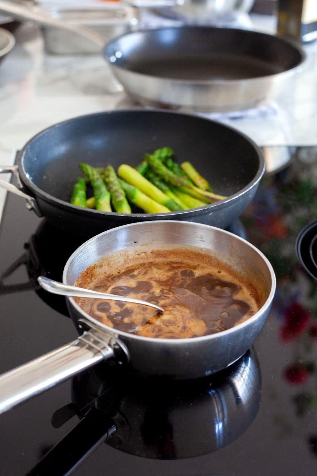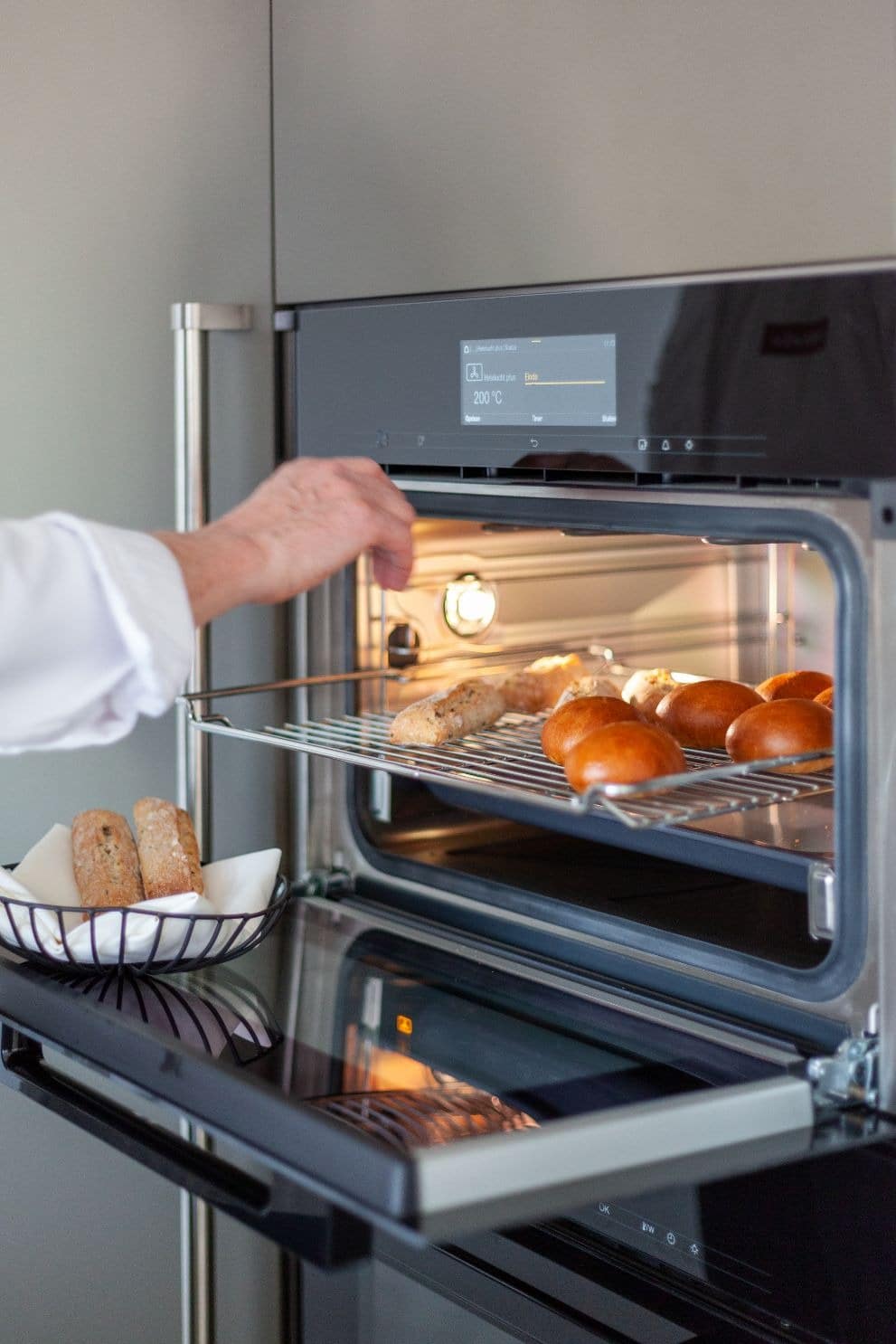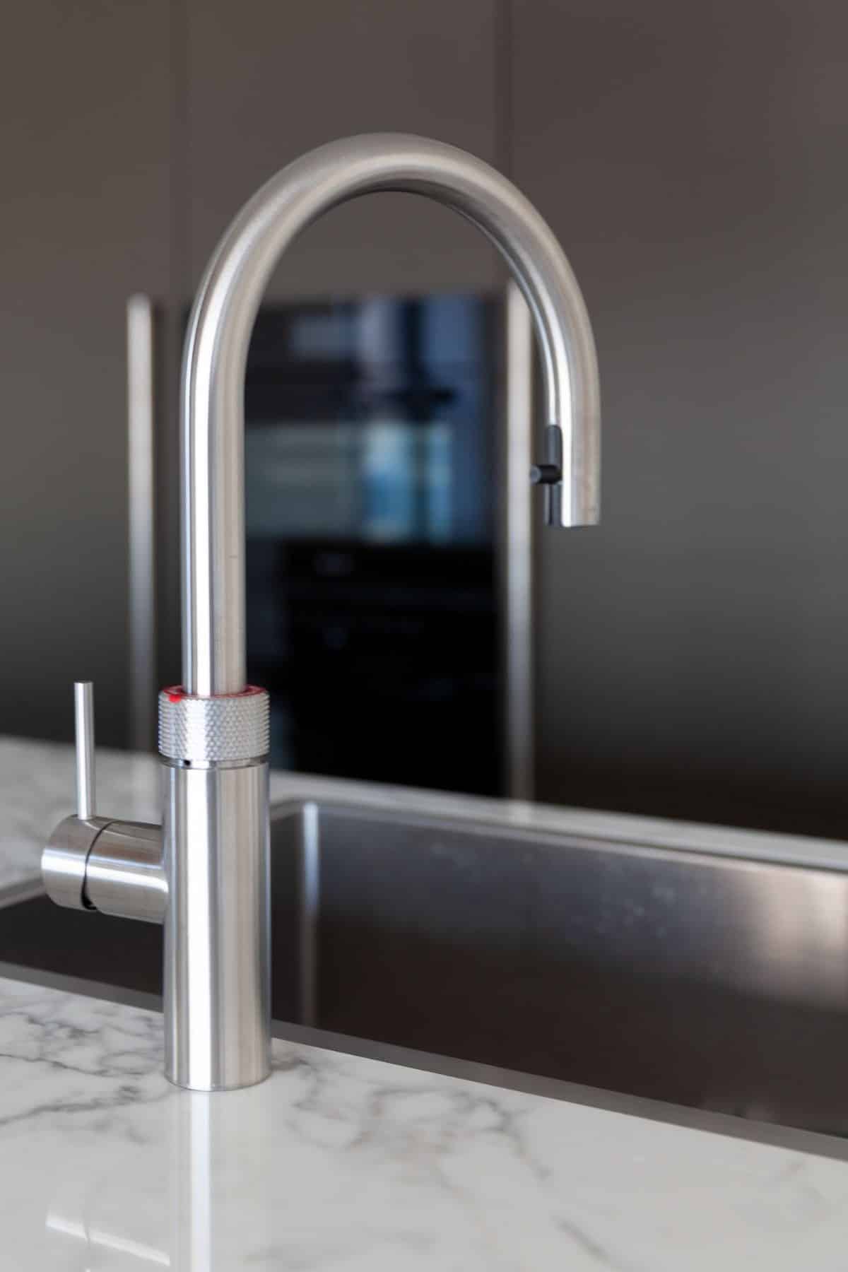 De familie heeft voor hoogwaardig keukenapparatuur gekozen in de moderne MDF keuken. Zo is er een Miele stoomoven en heteluchtoven geïntegreerd in de kastenwand. Voor het bereiden van culinaire maaltijden heeft Van Ginkel Keukens een Bora kookplaat met geïntegreerde afzuiging geplaatst. Daarnaast mogen een heuse wijnkoeler en een kokendwaterkraan van Quooker niet ontbreken.