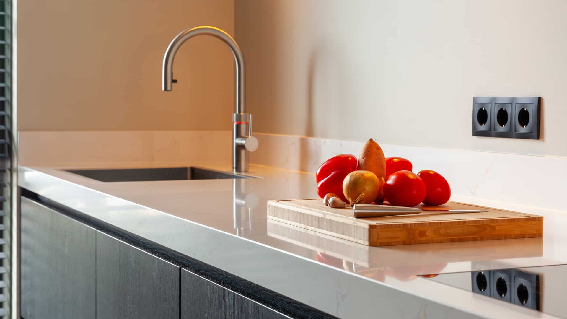 De Bora X Pure kookplaat met geïntegreerde afzuiging zorgt voor een frisse keuken. Elke dag opnieuw. De chromen Quooker is het toonbeeld van dagelijks gemak en is ondertussen niet meer weg te denken uit moderne keukens.