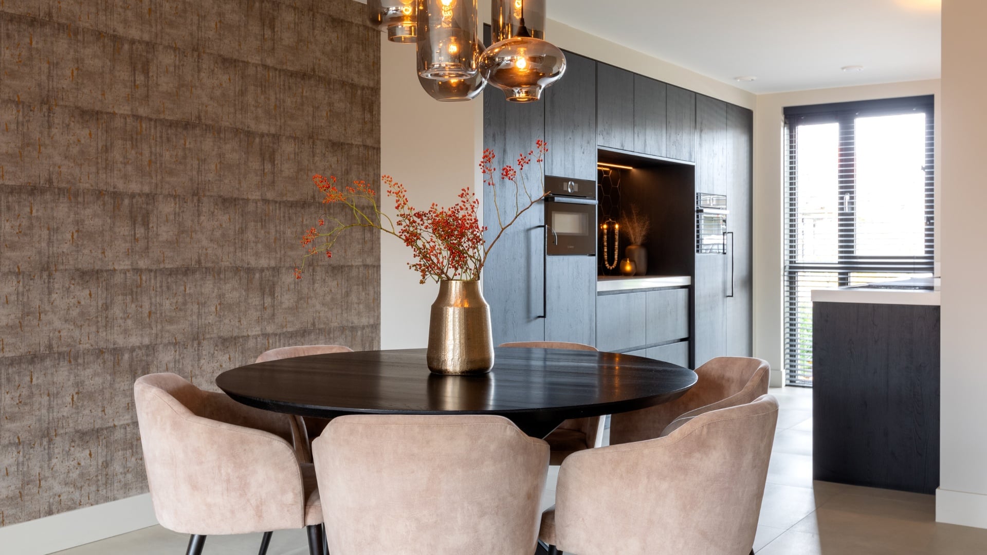 • Keukenstijl: Zwarte houten keuken met marmer, minimalistisch en stijlvol